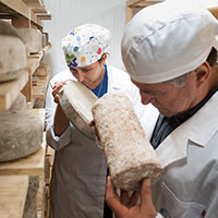 El trabajo manual en todos los procesos son nuestras señas de identidad donde ponemos diariamente a prueba todos nuestros sentidos. Removemos a mano la cuajada en la cuba y moldeamos con mucho cuidado, volteamos cada día los quesos y lavamos periódicamente los de corteza lavada. Finalmente, envolvemos cada queso en papel alimentario para protegerlo de la luz y del aire.